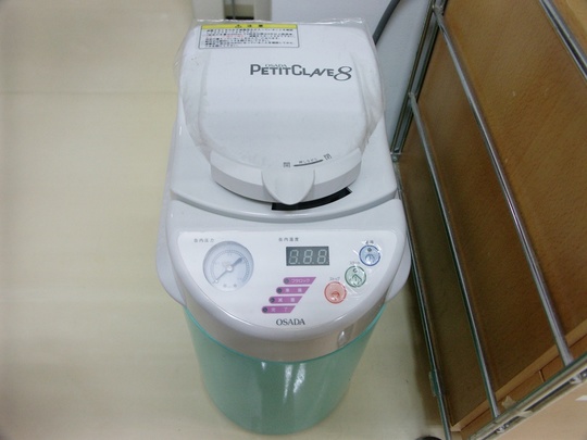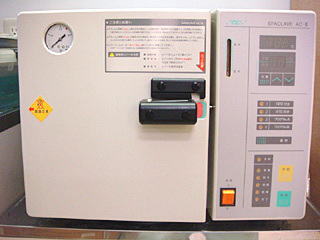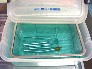 診療器具の衛生管理には、まずグルタラール製剤による薬液消毒の後、高圧蒸気滅菌機(オートクレーブ)にて滅菌しております。