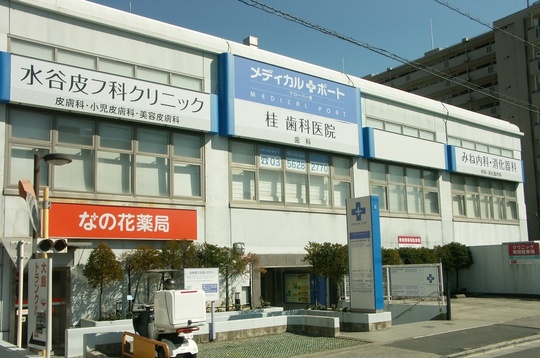 当院はメディカルポ-ト内1階にございます。複数のクリニックが集まった医療コンプレックスです。中央の大きい看板が目印です。3台分の駐車場をご用意しております。